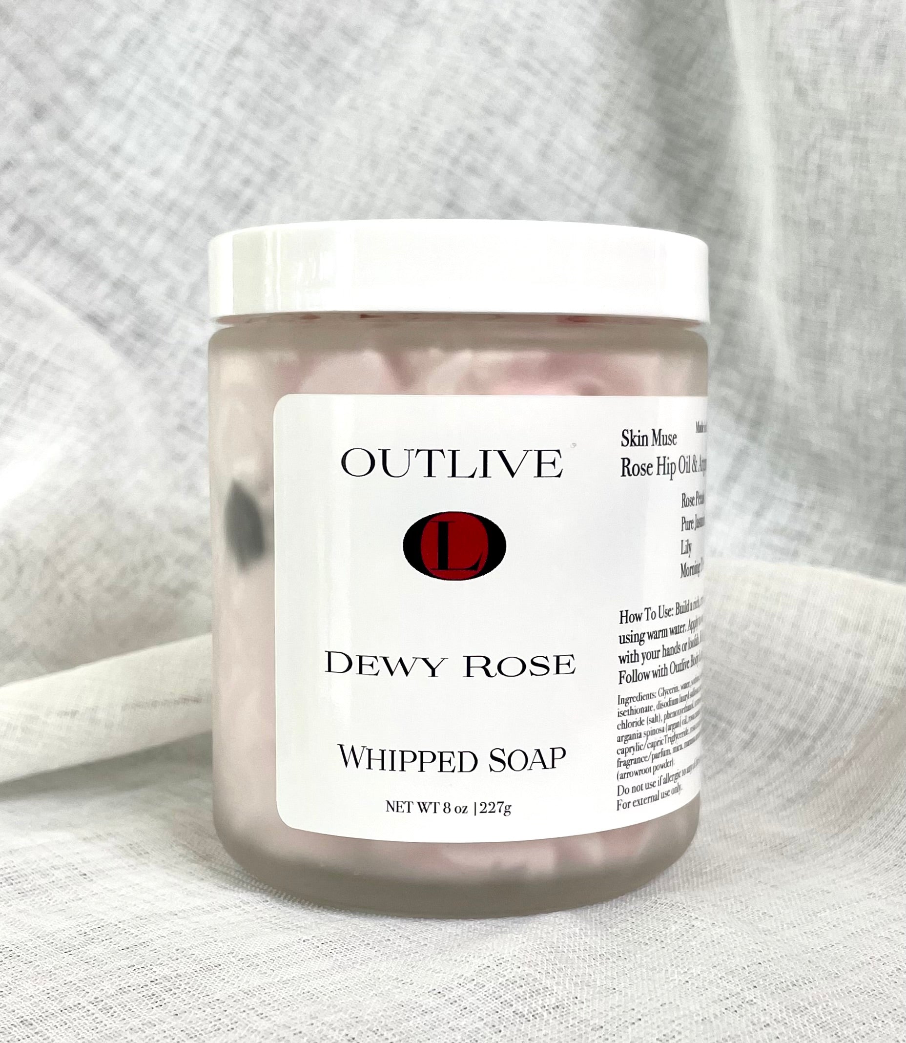 A modern take on an ethereal beauty - Dewy Rose is the lively elegance that has entered the room. Inspired by the mysticism of the "queen of flowers", this delicate whipped soap brings together sophisticated Rose Petals, Pure Jasmine, Lily, and Morning Dew. Gracefully sultry and worthy of falling in love with.